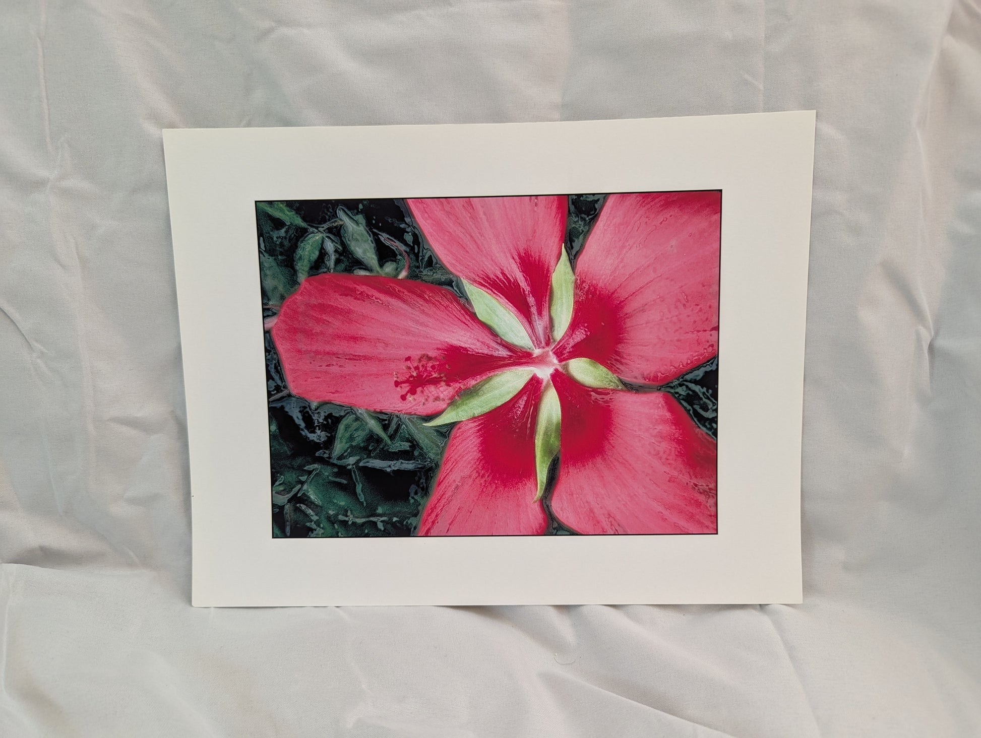 Close-up of a Scarlet Rosemallow aka Hibiscus Coccineus aka Texas Star Hibiscus, printed on smooth card stock. Taken, edited, and printed by Roger Sizemore in Atlanta, GA. .